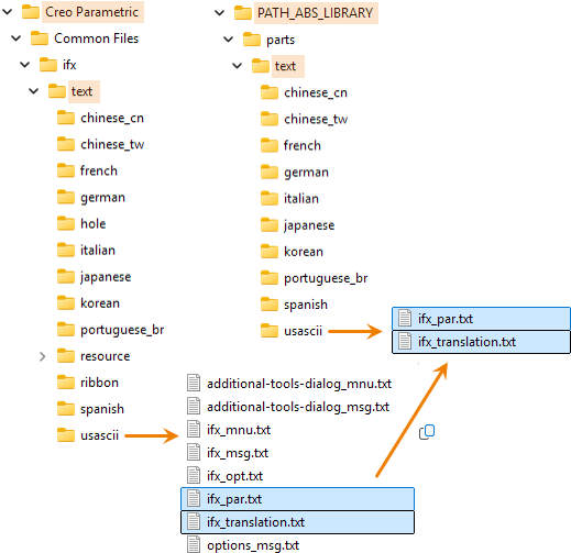 Eine detaillierte Beschreibung finden Sie im IFX-Kapitel Bibliotheksübersetzungsdateien im Creo Parametric Help Center.