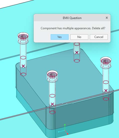 - Predefined components: The familiar “Remove Component” function can be used to remove predefined screw and pin information from points.