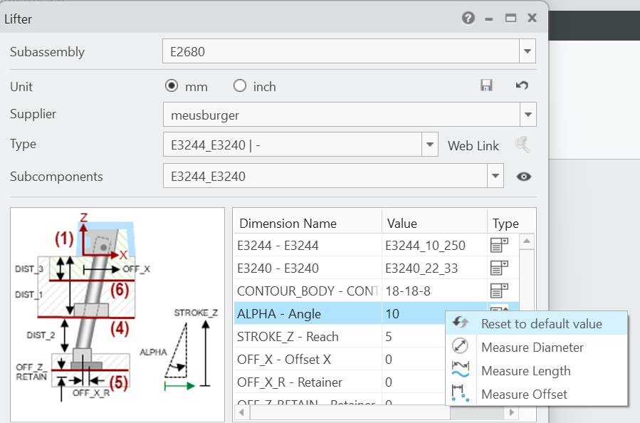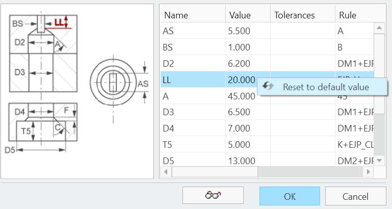 - Component dialog: Values in the tables can be reset to default using the right mouse button.